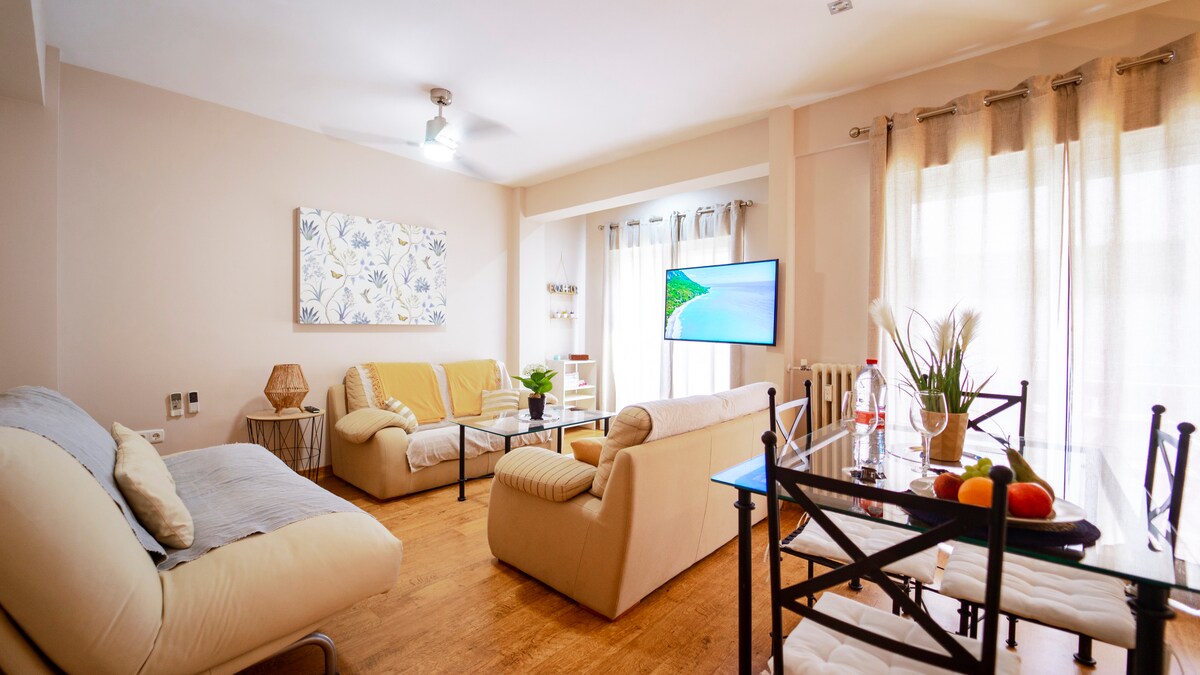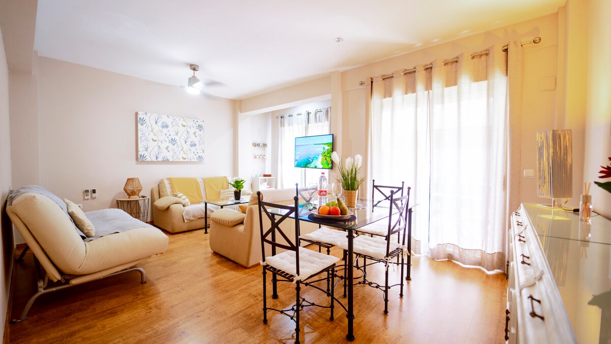 La vivienda está completamente equipada, cuenta con dormitorio principal con cama de matrimonio y Smart TV, segundo dormitorio muy amplio con 3 camas individuales y Smart TV, espacioso salón con mesa de comedor, tres sofás muy cómodos, ventilador, aire acondicionado y calefacción, cocina perfectamente equipada con cafetera, tostador, hervidor, lavadora, nevera, lavavajillas y todo lo necesario para cocinar, y cuarto de baño completo con toallas, secador, gel de ducha y todo lo imprescindible para una estancia confortable. Perfecto para disfrutar unos días con amigos o en familia.