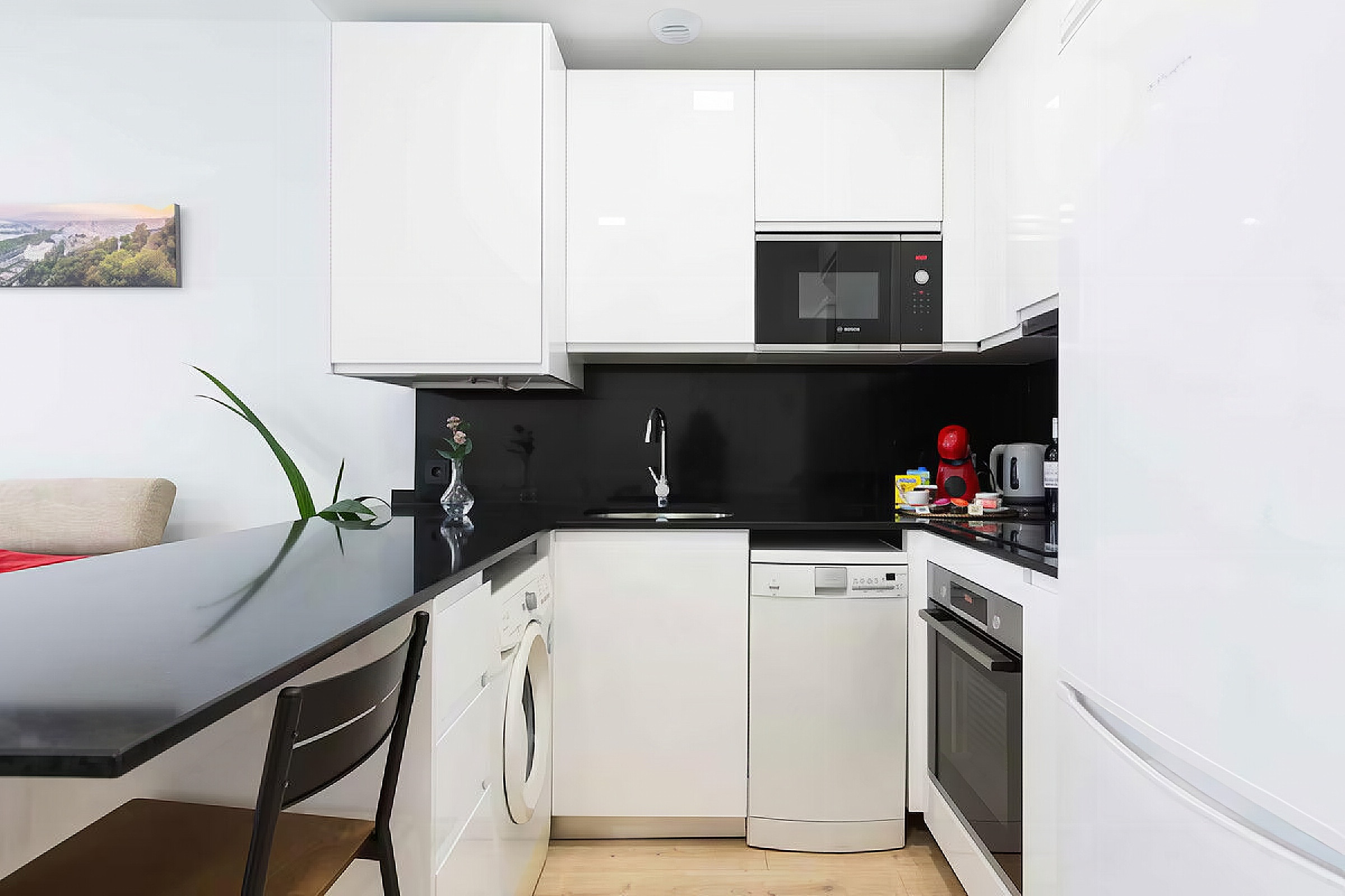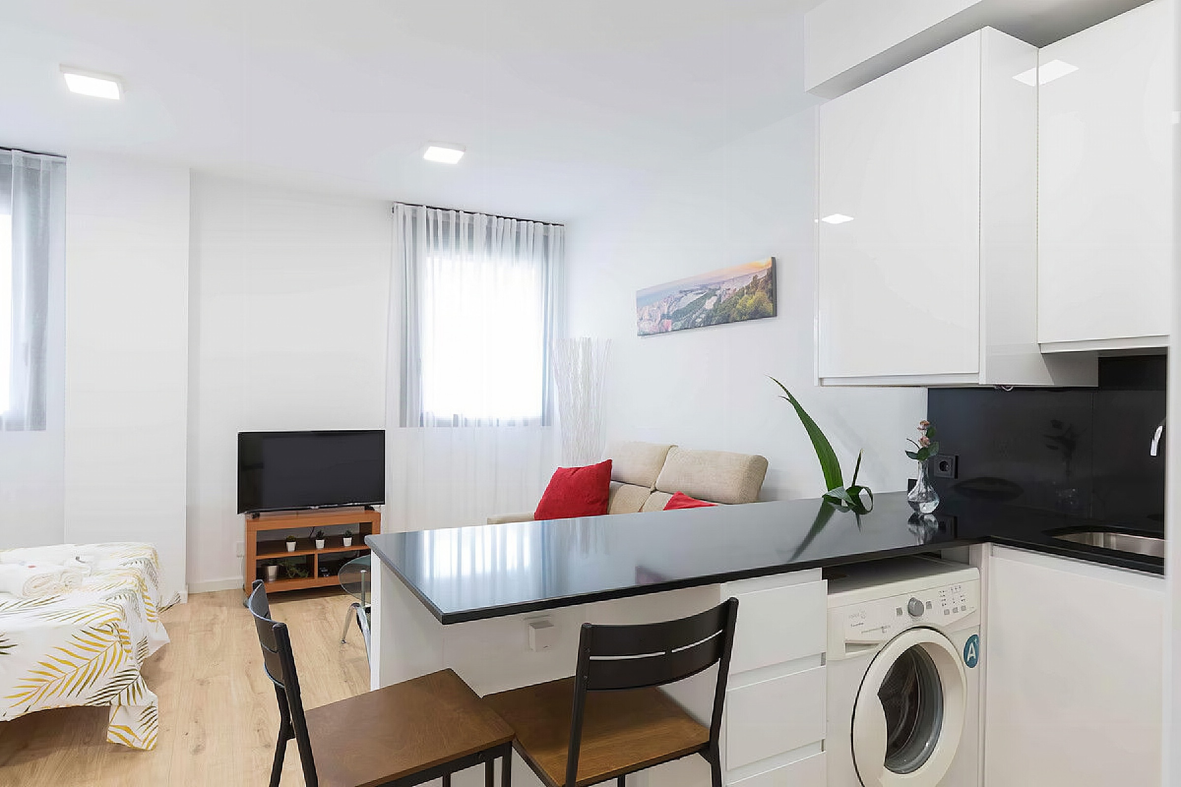 Its open-plan design integrates the bedroom, living room, and dining room into a bright, comfortable, and airy space. It also features a fully equipped kitchen with modern appliances to make you feel right at home.
